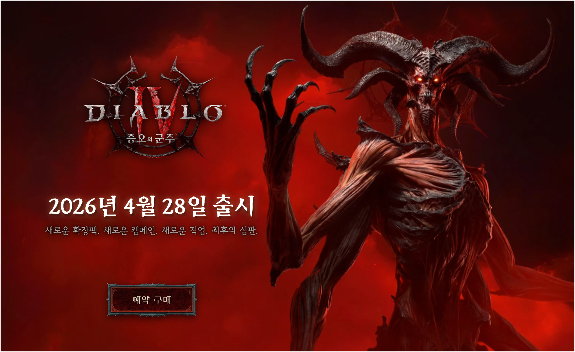 2026년 4월 28일, 디아블로4의 진짜 여정이 시작됩니다. 예약 구매를 서두르고, 새로운 전쟁에 대비하세요.